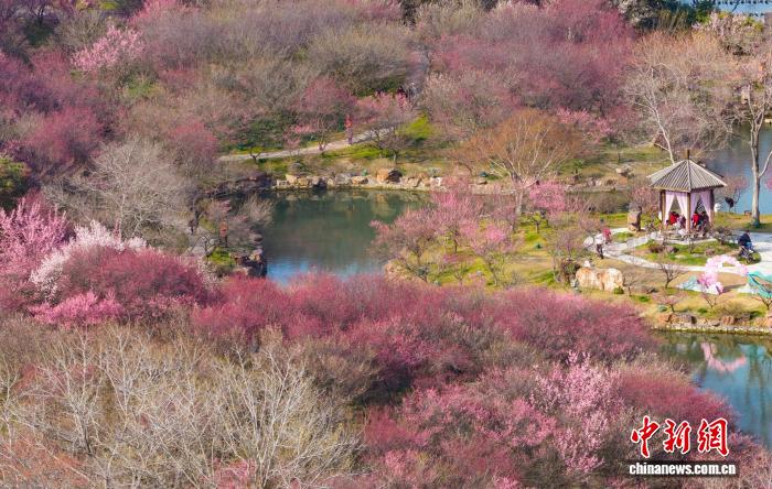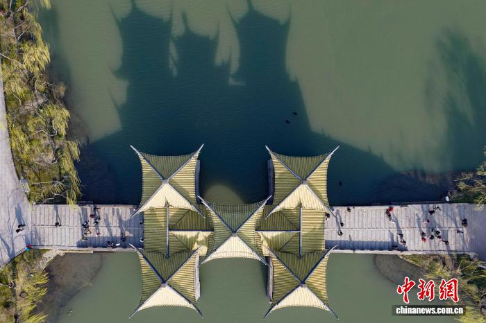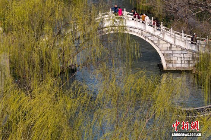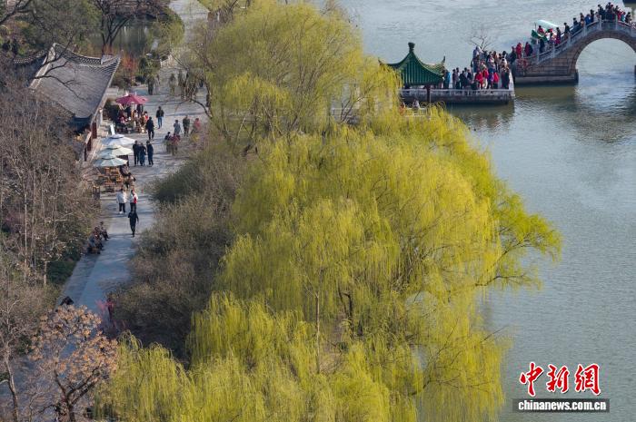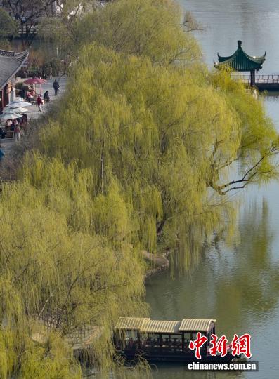 3月10日,江苏扬州,肥西湖景色区花白柳绿,秋意浓浓。中新社记者 泱波 摄