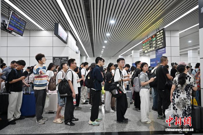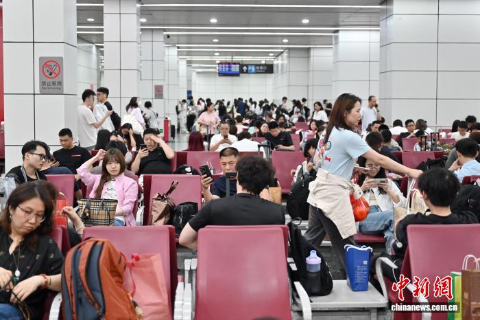 4月3日,广东省广州市,广州东站迎明朗假日出止客淌。图为搭客正在候车室候车。中新社记者 旧楚白 摄